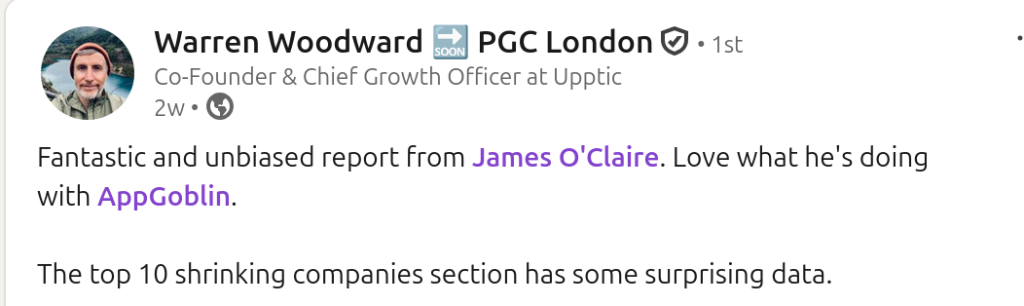 In 2025 I started having journalists reach out to collaborate on mobile data projects and research using AppGoblin’s resources. AppGoblin has also started building more features which people in the mobile ad and app user acquisition find genuinely useful.